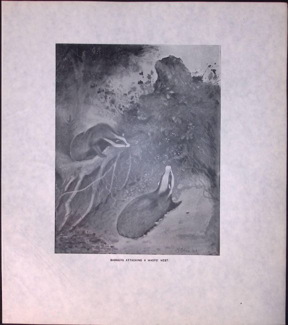 Title: Badgers Attacking Wasp Nest Rare Limited-Edition J.G. Millais Antique Print.