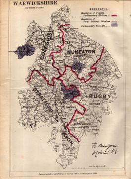 Title: Antique 139 Years-Old Scarce Map of Warwickshire Boundary Changes 1885.