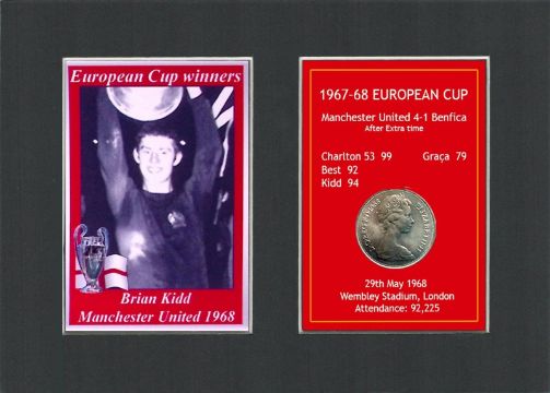 Title: Brian Kidd Manchester United 1968 European Cup Mounted Coin Metal Art