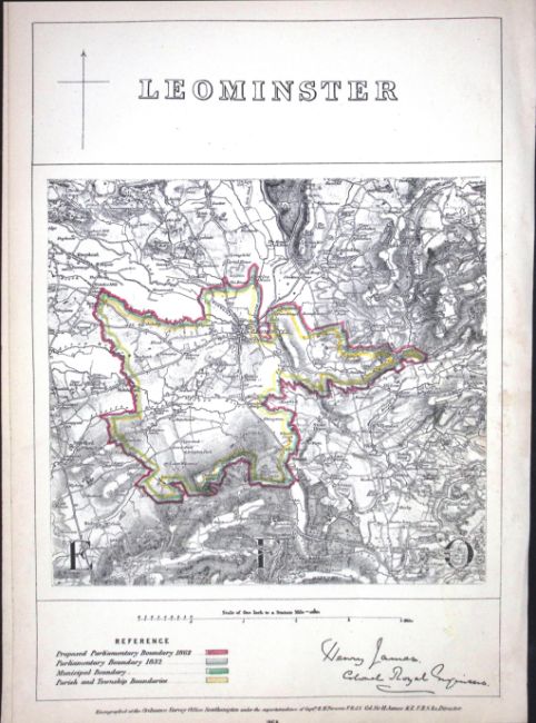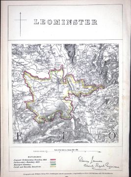 Title: Leominster Herefordshire Boundary Commission 157-Year-Old Coloured Antique Map.