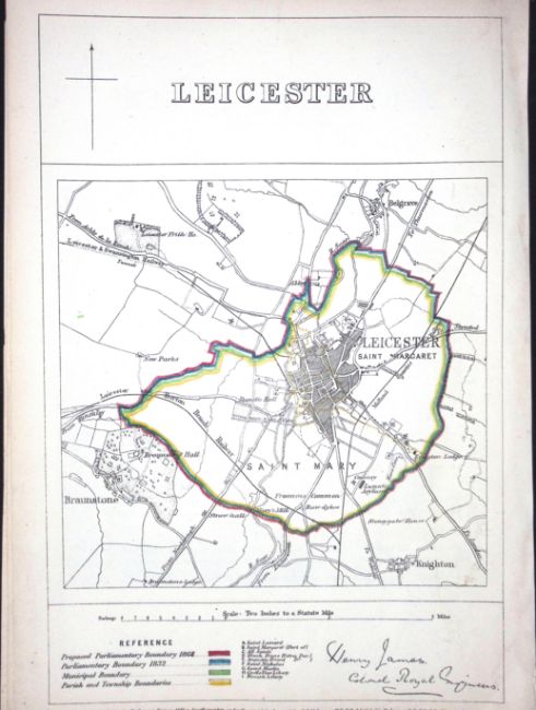 Leicester City Boundary Commission 157-Year-Old Coloured Antique Map.
