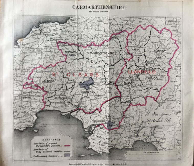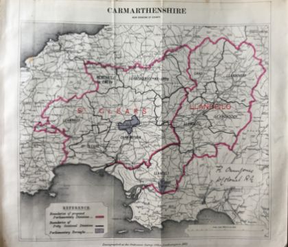 Title: Antique 139 Years-Old Scarce Map Carmarthenshire 1885 Boundary Changes.