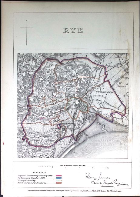 Title: Rye East Sussex Boundary Commission Coloured 157-Year-Old Antique Map.