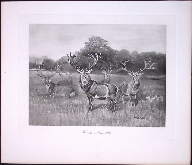 Title: Herd Warnham Stags Rare Limited-Edition Antique JG Millais Print-21.
