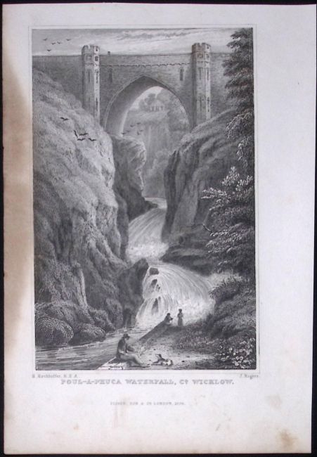 Title: Wicklow Poul-A-Phuca Waterfall 194 Years Old Antique Steel Engraving-3