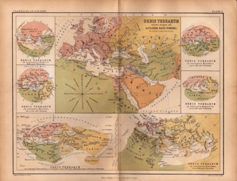 Title: Antique 1867 “Orbis Veteribus Notus” Coloured Map of the Known World.