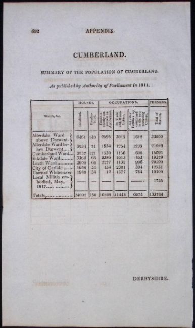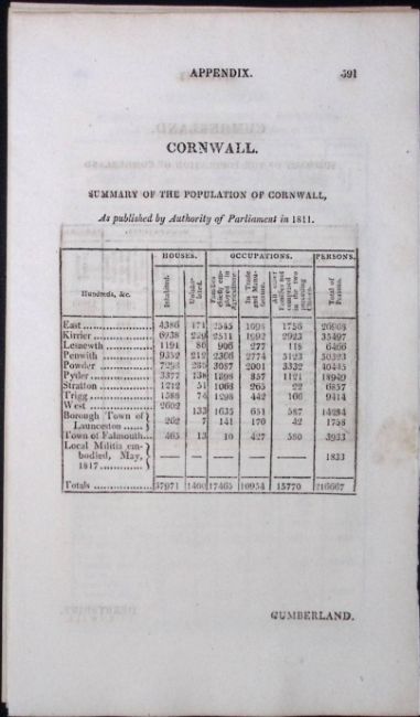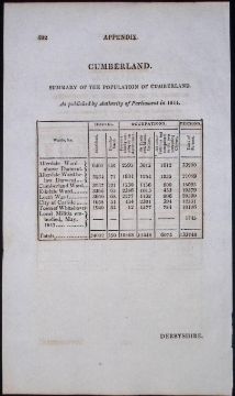 Title: Cornwall & Cumbria Antique 207 Years-Old Georgian Population Census Scarce Print.