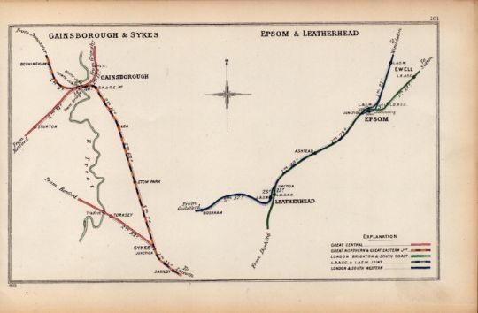 Title: Ewell, Epsom, Leatherhead Antique Railway Junction Diagram-101.