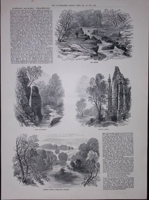 Title: Rambling Sketches of Wharfedale North Yorkshire Antique Woodcut Engravings.