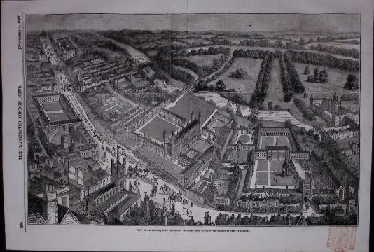 Title: View of Cambridge And Its Colleges Victorian 1887 Antique Wood Engraved Print