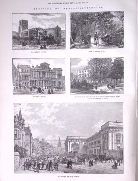 Newcastle Upon Tyne Large View of The City Antique 1887 Newspaper.
