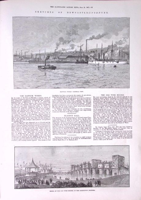 Title: Newcastle Upon Tyne Large Engraving View of The City Antique 1887 Newspaper.