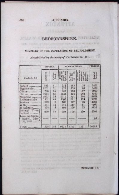 Title: Bedfordshire Antique 207 Years-Old Georgian Population Census Scarce Print.