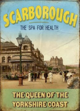 Title: Scarborough Nostalgic Vintage Spa Scene Holiday Poster Style Metal Wall Art