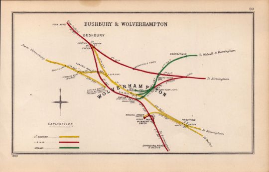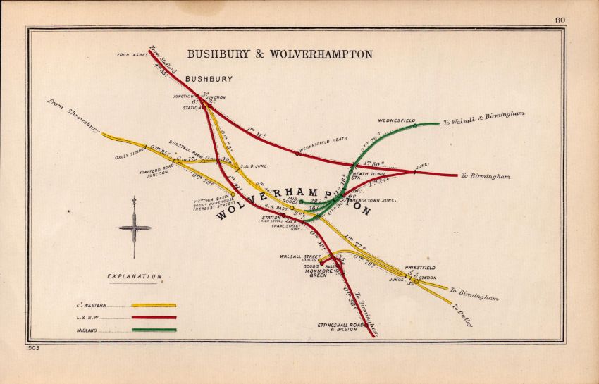 Title: Bushbury & Wolverhampton Coloured Antique Railway Diagram-80