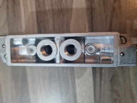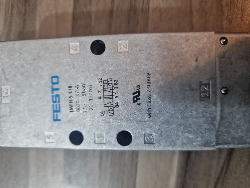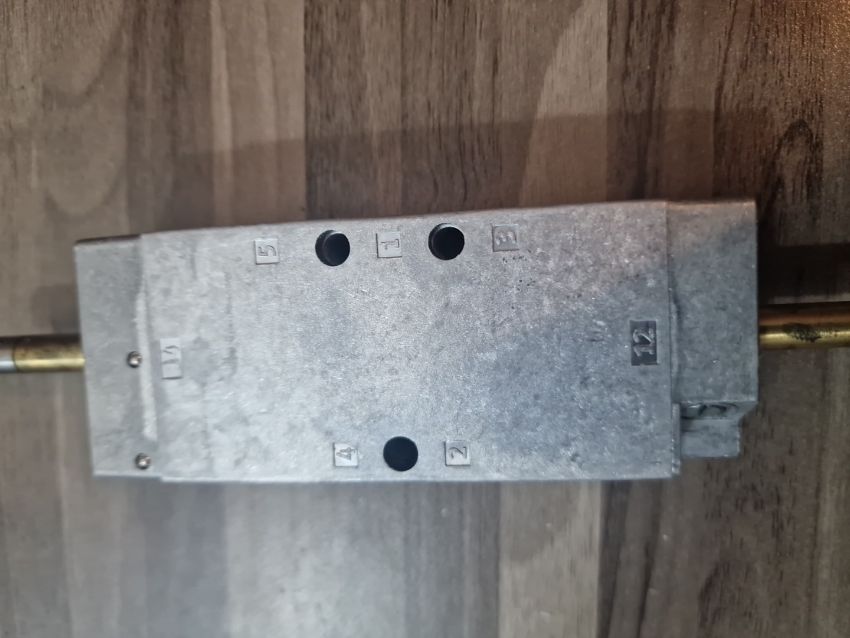 Function: It is a 5/2 bistable solenoid valve used in pneumatic automation systems.