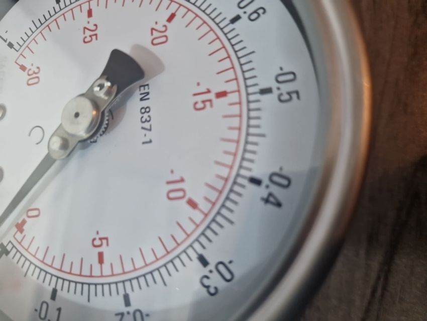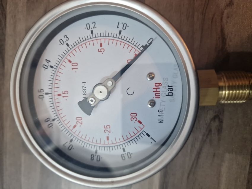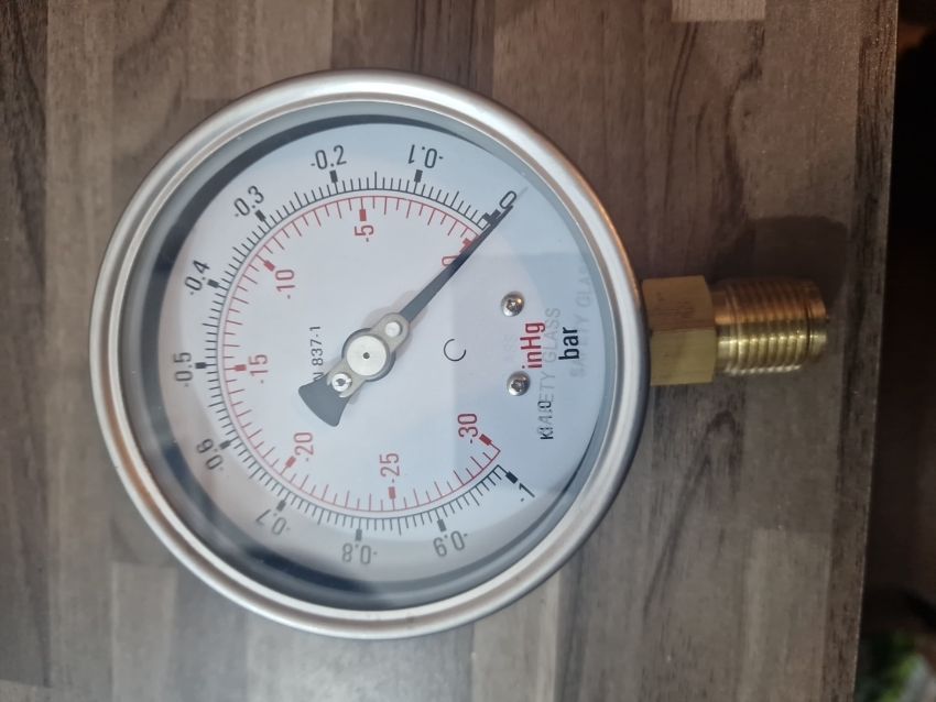 analog pressure gauge, manometer, Bourdon tube mechanism. New