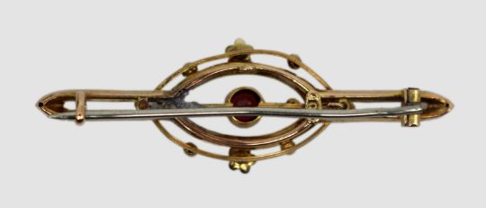 Material: 9ct yellow and rose gold, garnet, and pearls