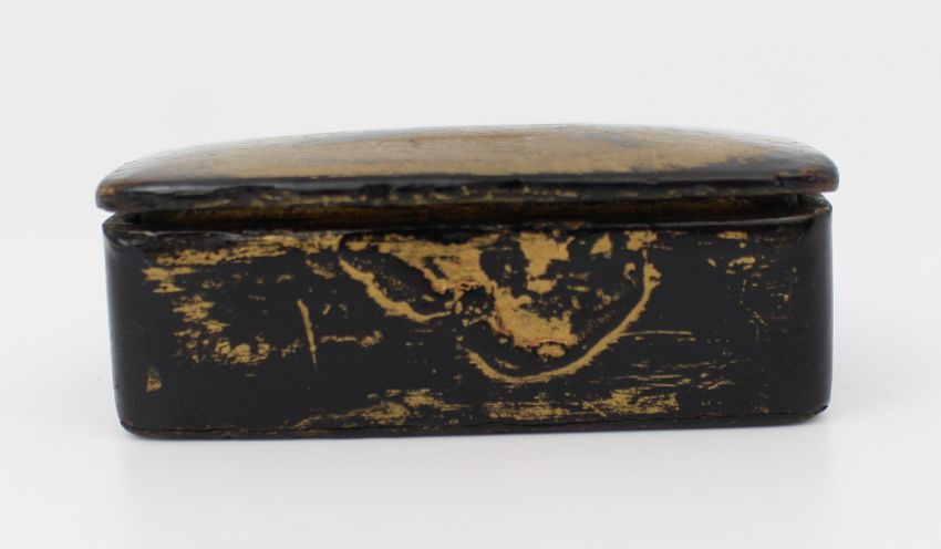 A small early 19th-century rectangular snuff box in papier-mâché, with gently domed lid and rounded corners.