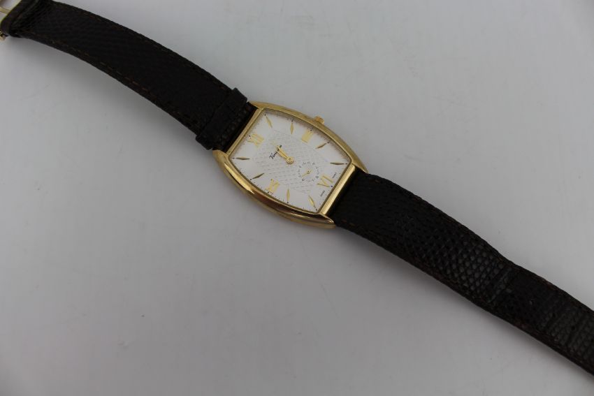 Fitted with a later brown lizard-grain leather strap, previously worn but in presentable condition and very wearable as is.