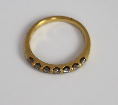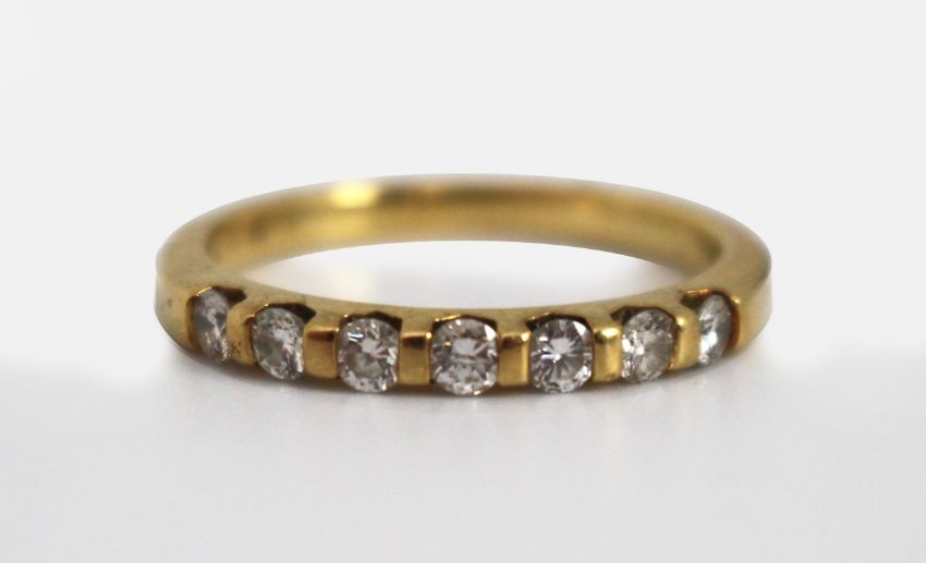 A timeless and elegant 18ct yellow gold diamond half eternity ring, perfect for stacking or wearing alone.