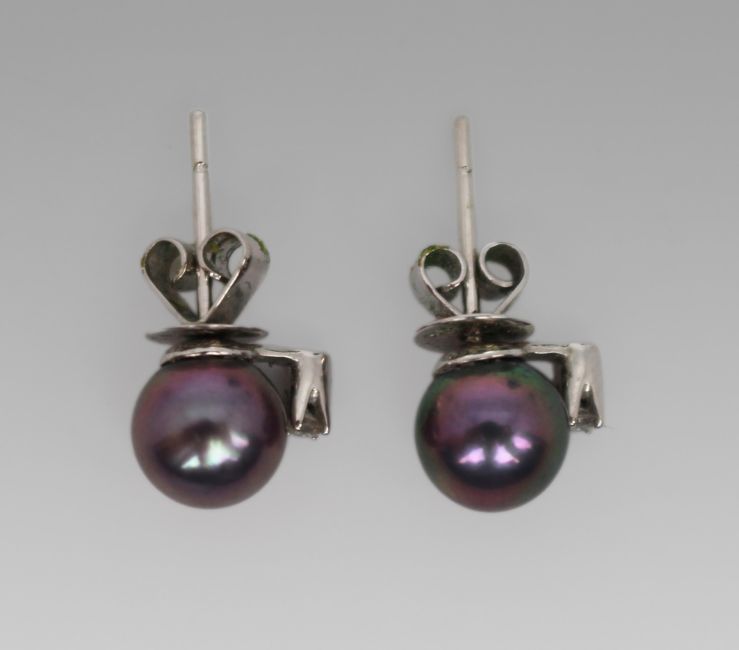 Pearls: Black cultured pearls with iridescent hues