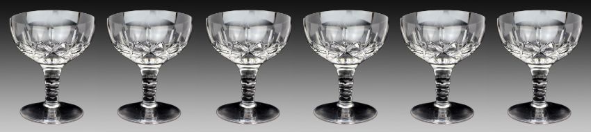 Title: Set of 6 Stuart Crystal Carlingford Champagne Saucers