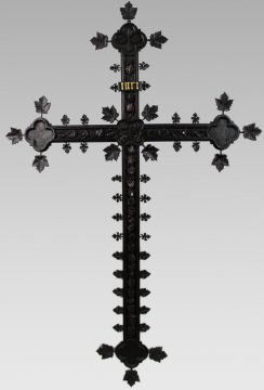 This cross exemplifies the detailed craftsmanship typical of the Black Forest region, combining both religious and decorative elements.