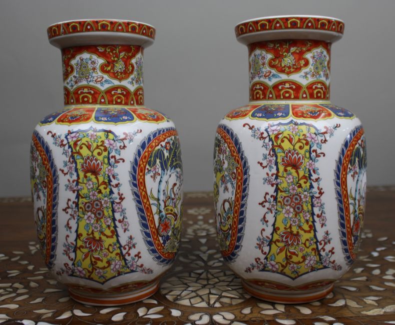 Title: Pair of Vintage Japanese Kutani-Style Porcelain Vases
