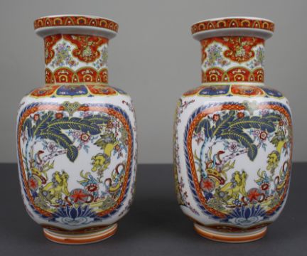 Pair of Vintage Japanese Kutani-Style Porcelain Vases