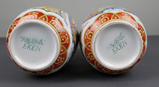 The pair display particularly well, with strong symmetrical form and bold, colourful decoration.