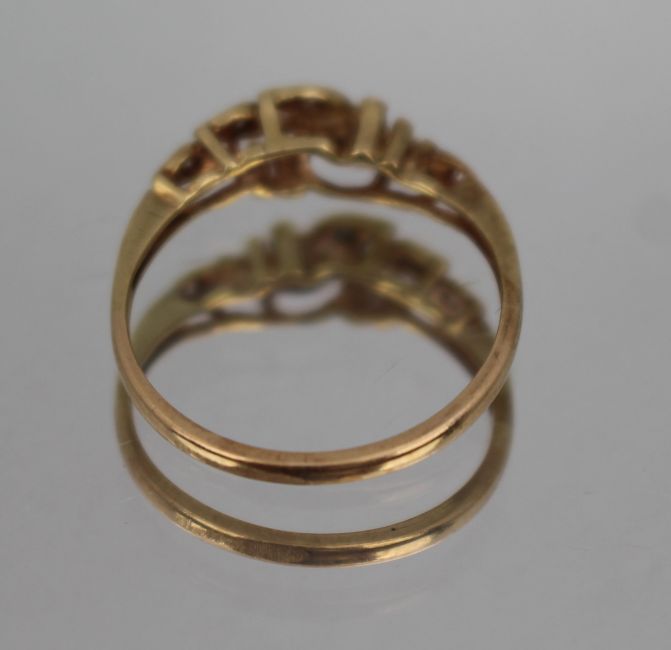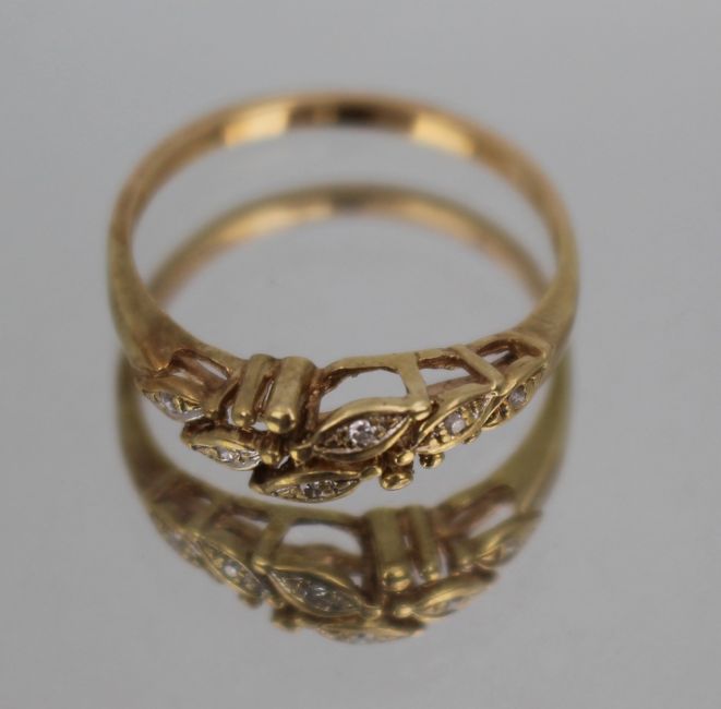 The ring has a warm gold appearance, though it is unhallmarked, and its metal content has not been verified.