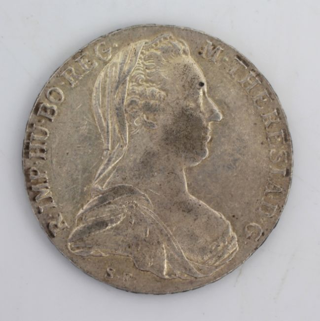 A Maria Theresa Thaler silver coin, featuring the standard 1780 date, which has been used on all official restrikes since the death of Empress Maria Theresa.