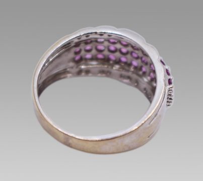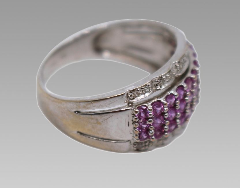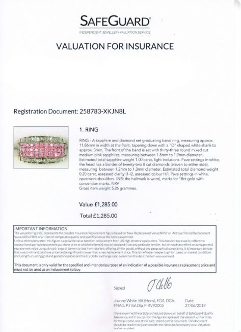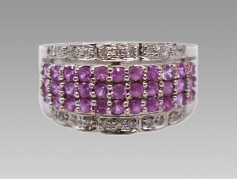 Title: Pink Sapphire & Diamond 18ct White Gold Band Ring