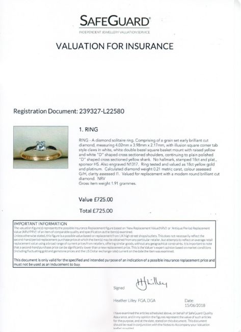 Though not hallmarked, the ring has been tested and confirmed as 18ct gold and platinum.