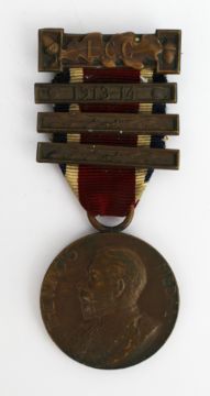 The 1912–13 medal has three bars including one dated; the 1913–14 medal has four bars.