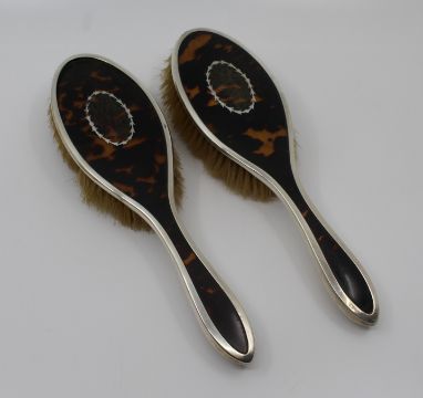 The mirror retains its original bevelled glass, while the brushes are fitted with natural bristles.