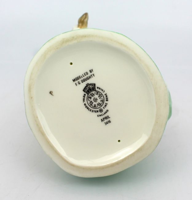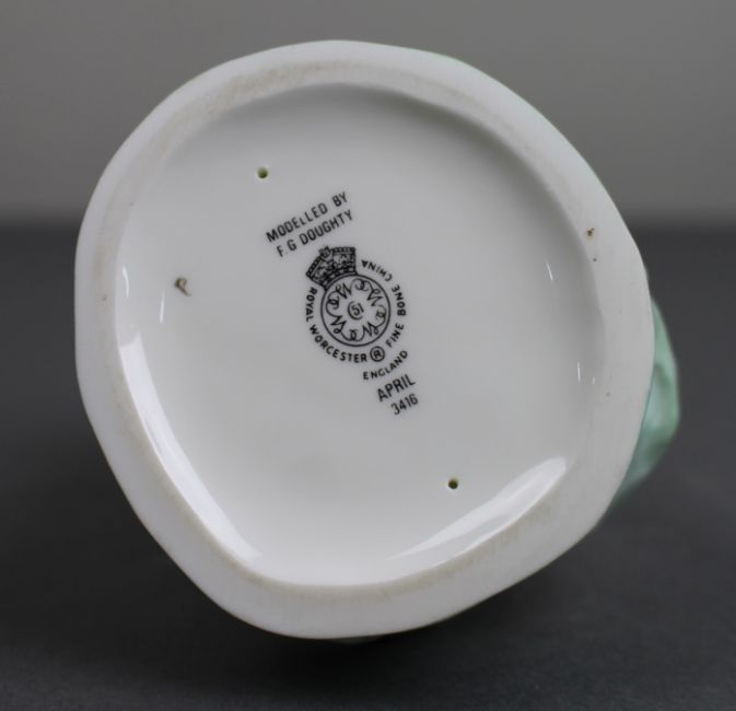 Charming Royal Worcester bone china figurine titled April, model no. 3416.