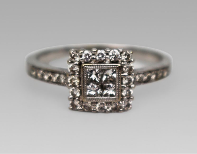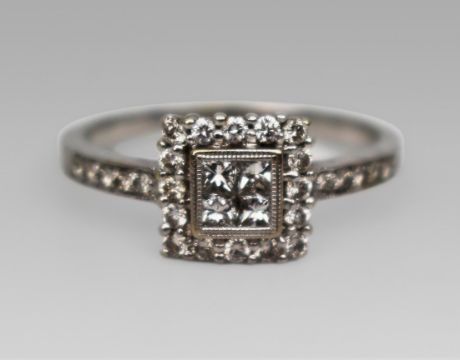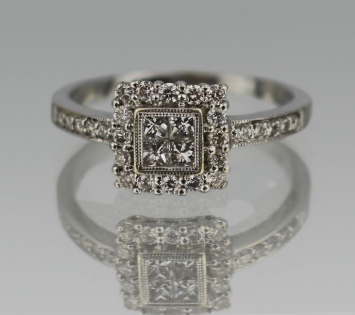 4 centrally Pave set Princess cut diamonds at 5 pts each.