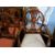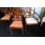 The seat upholstery shows some staining and marks, most noticeable to the red upholstered chairs.