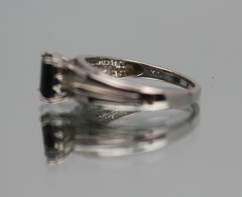 The solid 14ct white gold shank is stamped 14K, complementing the gemstone beautifully.