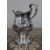 Of baluster form, the body is richly decorated in repoussé with scrolling foliage and flower heads.