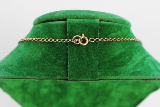The pendant is suspended from its original 9ct rose gold trace-link chain, which measures 48 cm and fastens with a bolt ring clasp.