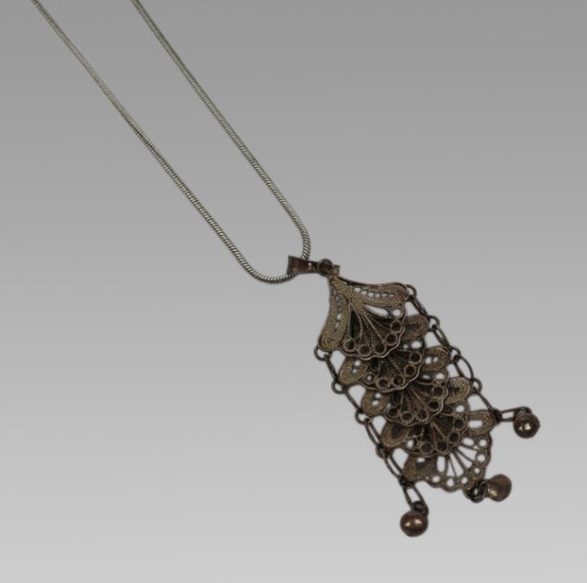 Title: Silver Filigree Pendant on Chain