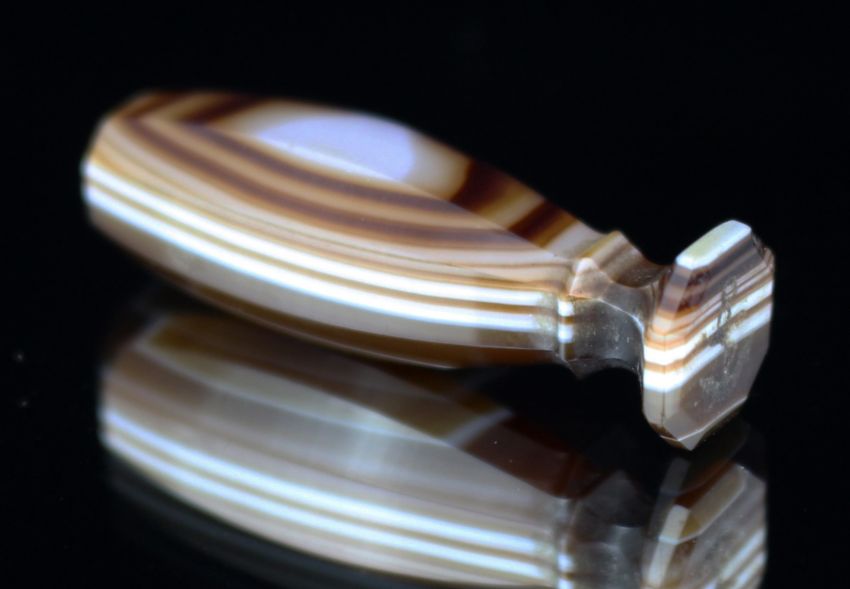 A small 19th-century desk or personal seal carved from natural banded agate, displaying attractive concentric bands in shades of brown, cream and white.