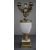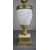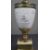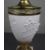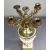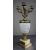 Originally conceived as an oil lamp and later converted to a multi-light candelabrum, retaining the central reservoir and side filler.