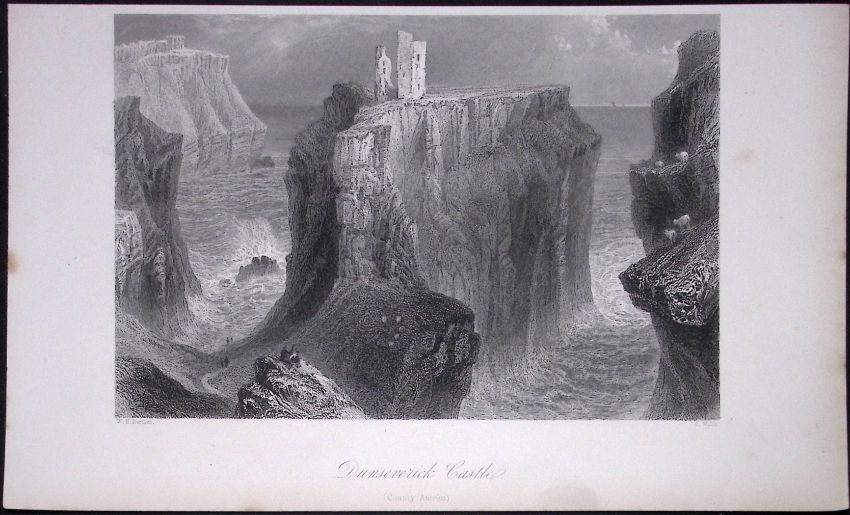 Title: Ireland Dunseverick Castle Antrim Ulster Antique 183 Years-Old Steel-Engraving-42.
