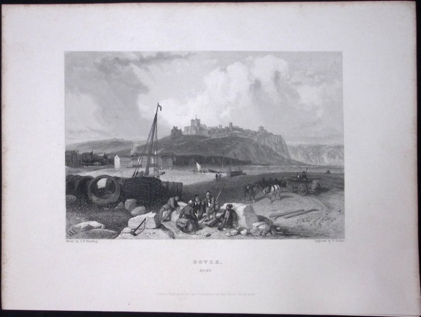 Title: Dover Castle WH Bartlett 183 Years-Old Antique Steel Engraving-23