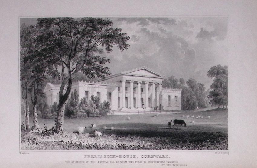 Title: Cornwall Near Truro Trelissick House Antique 193 Years-Old Steel-Engraving-38