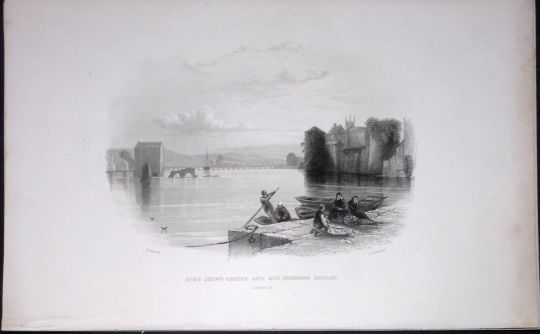 Title: Ireland King James Castle Limerick Antique 183 Years-Old Steel-Engraving-35.